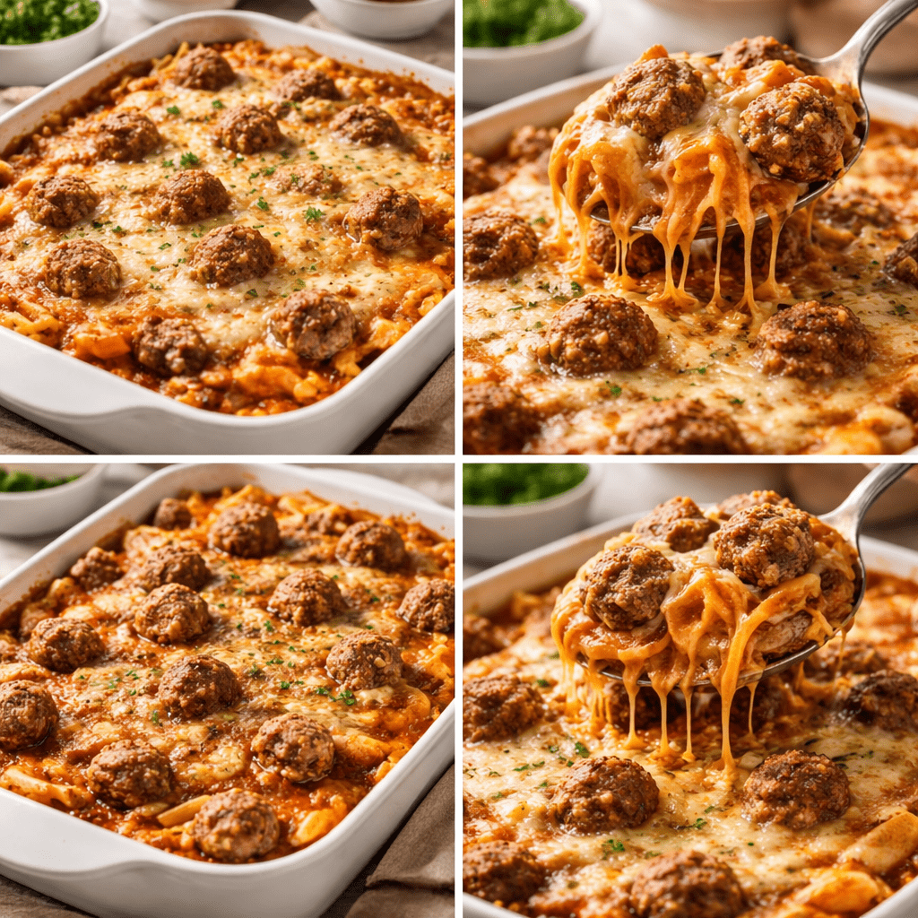 If you love simple comfort food dinners that require almost no prep, this Dump & Bake Meatball Casserole will quickly become a favorite in your kitchen. It’s one of those recipes that feels like magic — you simply combine everything in one dish, pop it in the oven, and let it cook itself into a bubbly, cheesy, pasta-filled masterpiece.