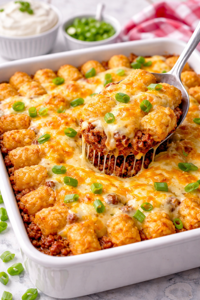 Bake uncovered for 25 minutes until the tater tots become crispy.