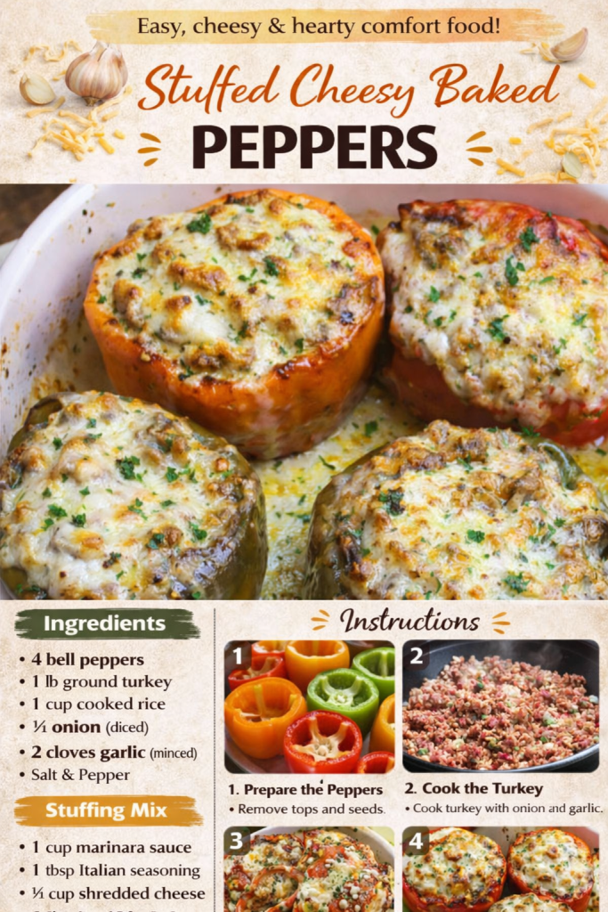 Return the stuffed peppers to the oven and bake for another 10–12 minutes, or until the cheese is melted and slightly bubbly.